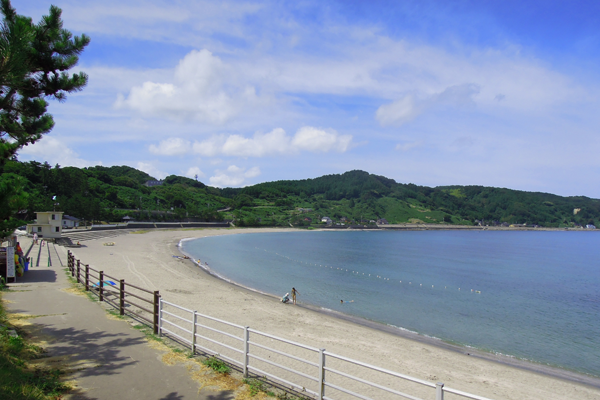 袖ヶ浜海水浴場は能登半島国定公園指定地区にある美しい自然を満喫できる海水浴場で、奇岩で有名な鴨ヶ浦海岸に隣接し、近くの天神山の灯台から180度の水平線が望めて輪島朝市へも徒歩10分。