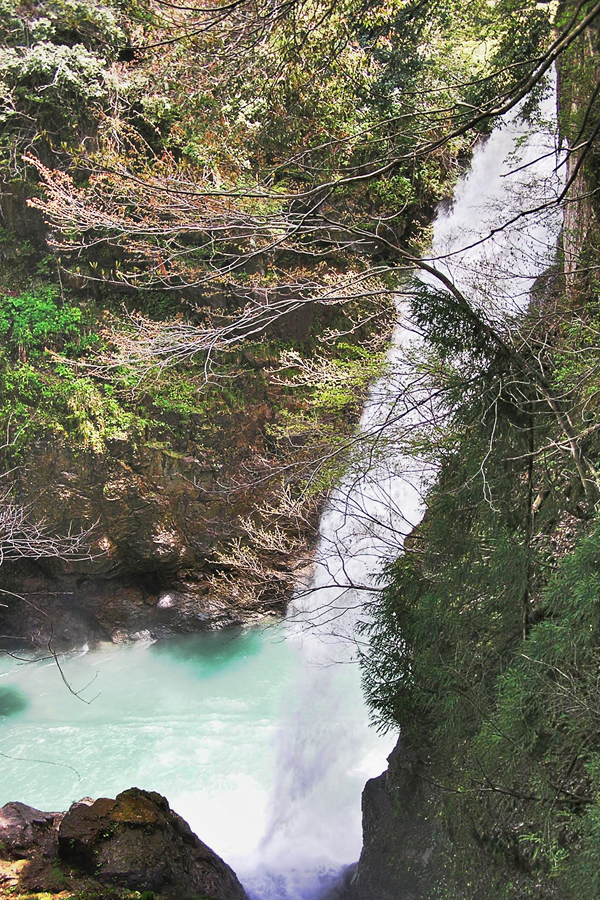 手取峡谷にある綿ヶ滝の名前の由来は、水しぶきが落下する様がまるで綿が舞っているように見えるとのことから。32mの高さから降り落ちる水流はダイナミックそのもの。四季折々の周囲の景観の美しさも格別です。